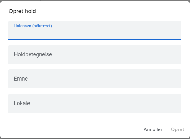Opret hold