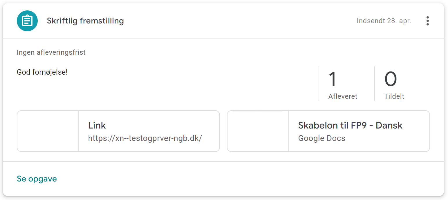 Vælg den opgave, du vil rette, og tryk på Se opgave