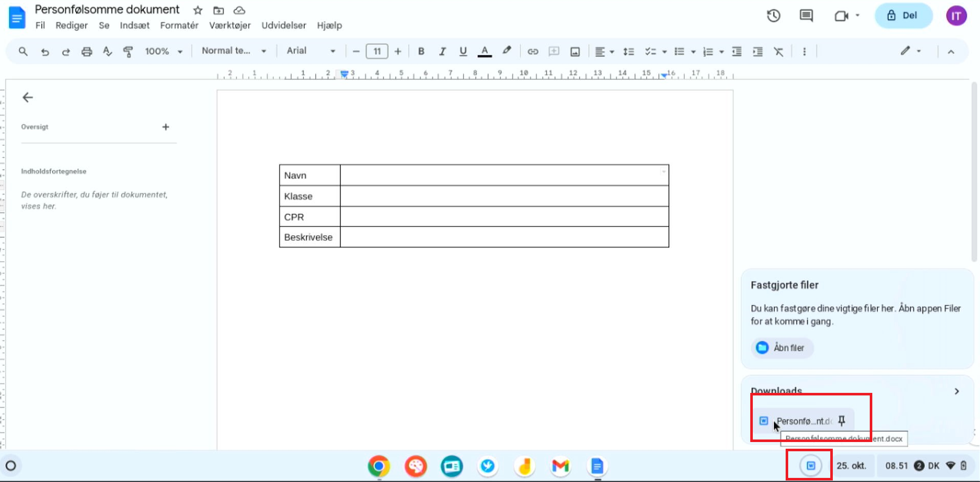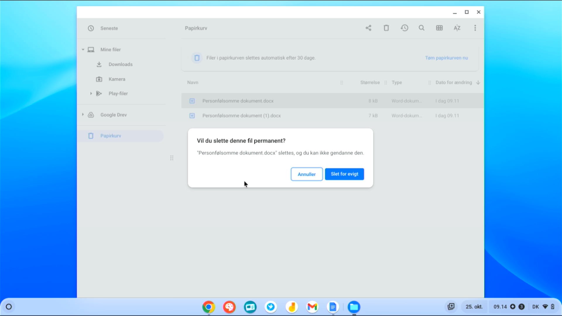 Håndter følsomme dokumenter på Chromebook