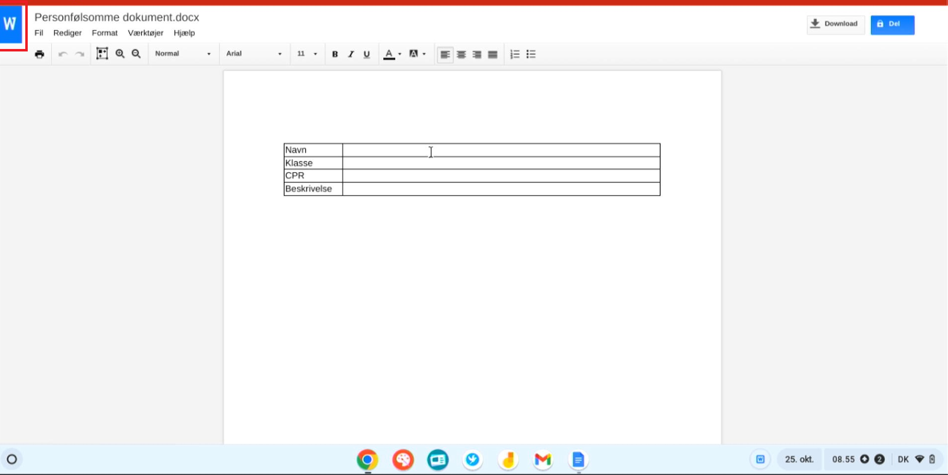 Hvis du skal arbejde med personfølsomme oplysninger, såsom CPR numre eller lignende, må disse ikke være tilgængelig online. De må altså ikke kunne tilgås fra dit Google Drev. Filer på skolens Google domæne bliver automatisk scannet og slettet hvis man finder personfølsomme oplysninger, især CPR-numre. Derfor er det vigtigt du følger denne guide, så du ikke mister dit arbejde senere.