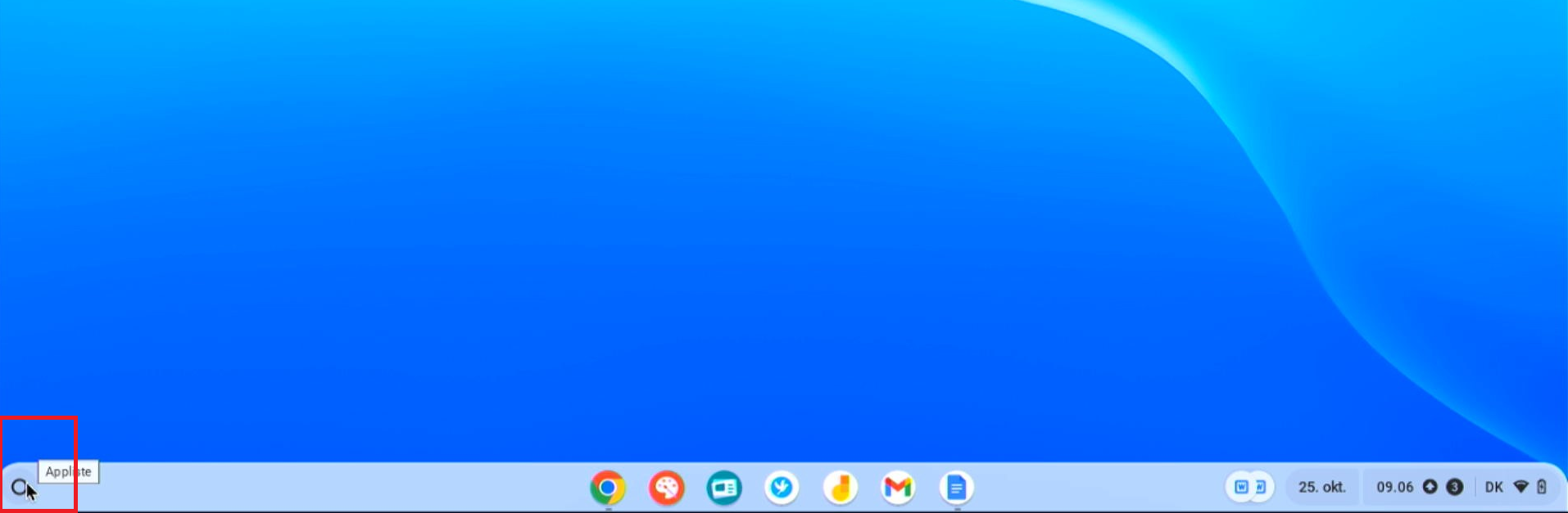 Du burde nu kunne se et lille blåt W nede ved uret i højre hjørne. Klik på det, og vælg det dokument du lige har downloadet