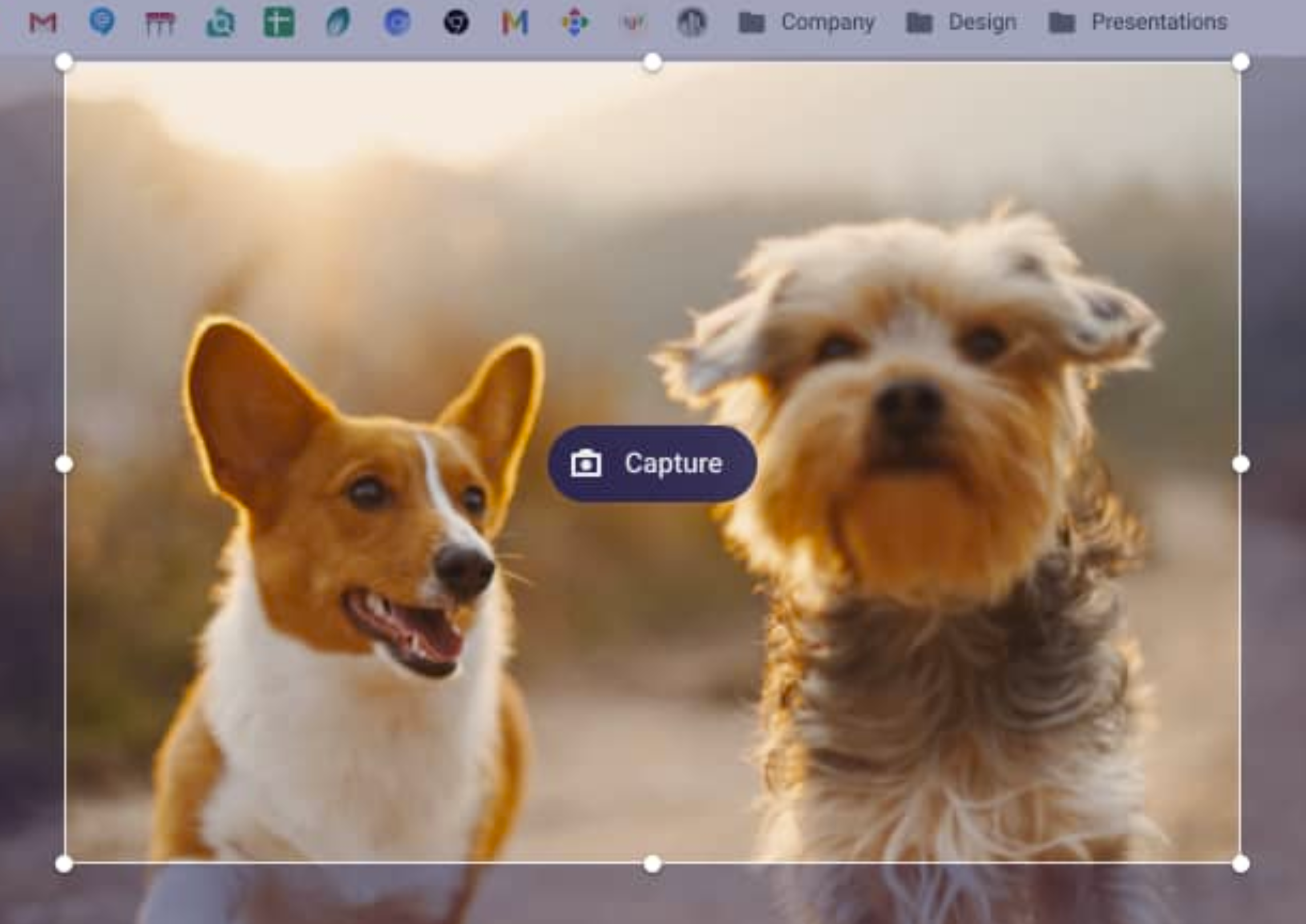 Brug musen til at markere det område af skærmen, du vil tage et billede af.