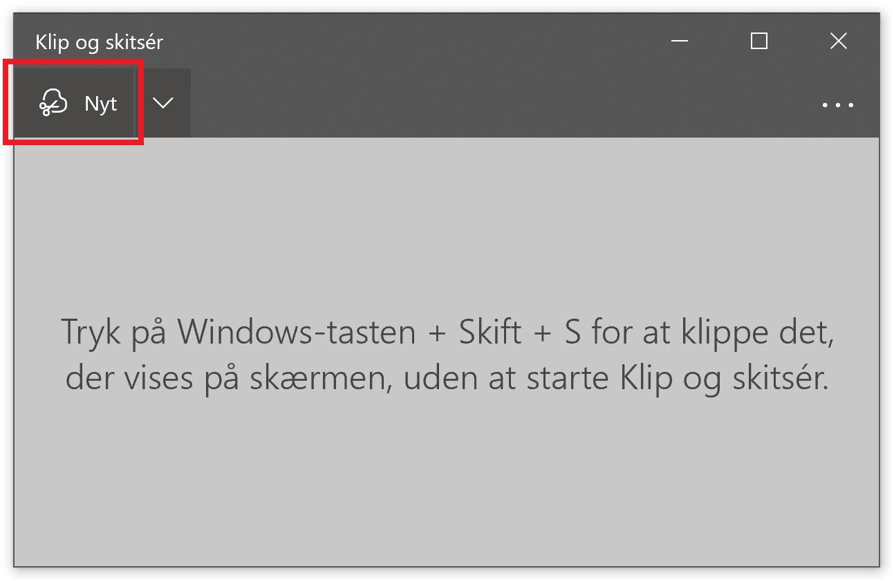I Klip og skitsér, tryk på Nyt i øverste, venstre hjørne