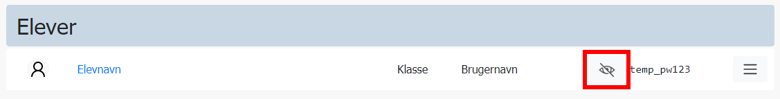 Koden vil nulstilles til en midlertidig kode, som vises, hvis man trykker på øje-ikonet