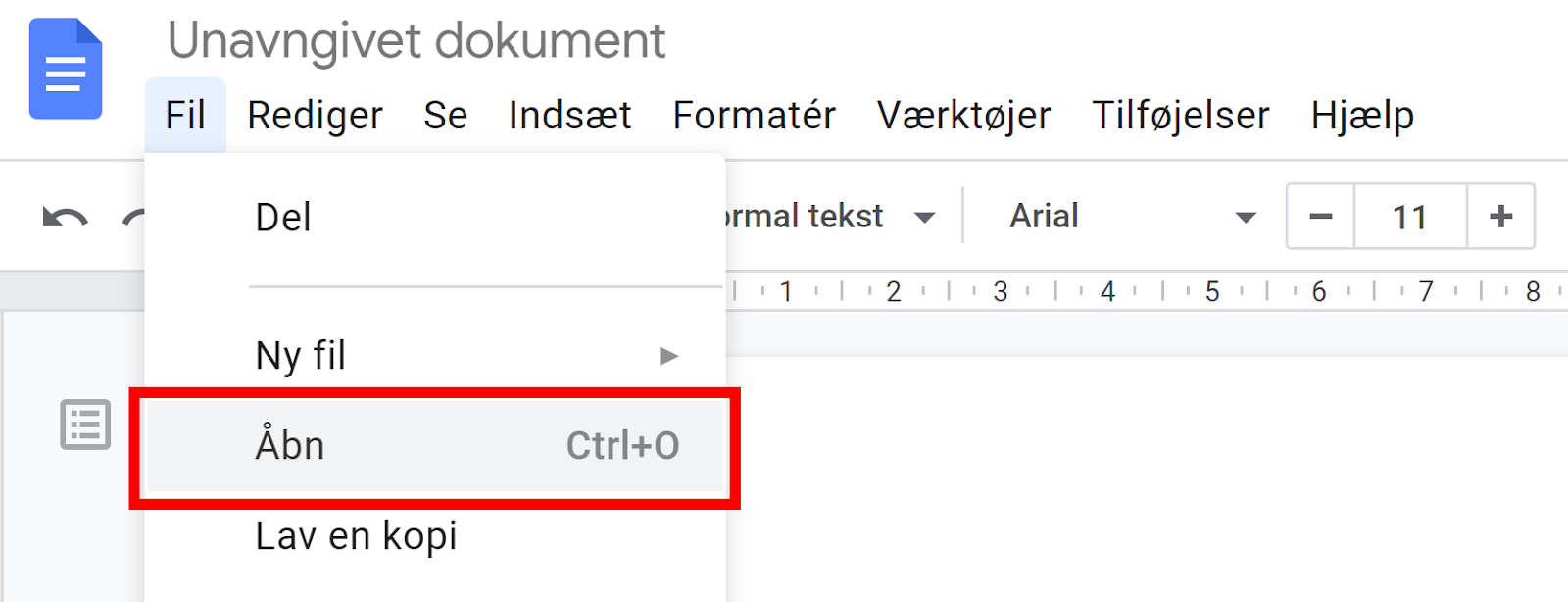 I dokumentet, der åbnes: Tryk Fil > Åbn