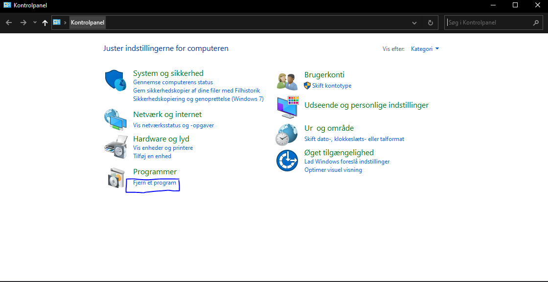 Tryk på Windows-tasten, skriv “Kontrolpanel”, og tryk derefter “Enter”