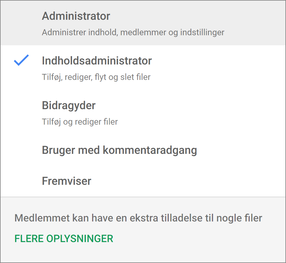 I menuen, som dukker op, kan man skrive UNI-login eller navn på de kollegaer, der skal tilføjes. Ved at trykke på “Indholdsadministrator”, kan man vælge, hvilke rettigheder det nye medlem skal have.