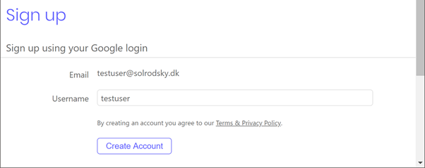 Når du har logget ind, burde følgende vindue dukke op. Her skal blot vælge “Create Account”. Du vil blive spurgt om nogle flere informationer, men de behøver ikke udfyldes. I stedet kan vinduet lukkes.