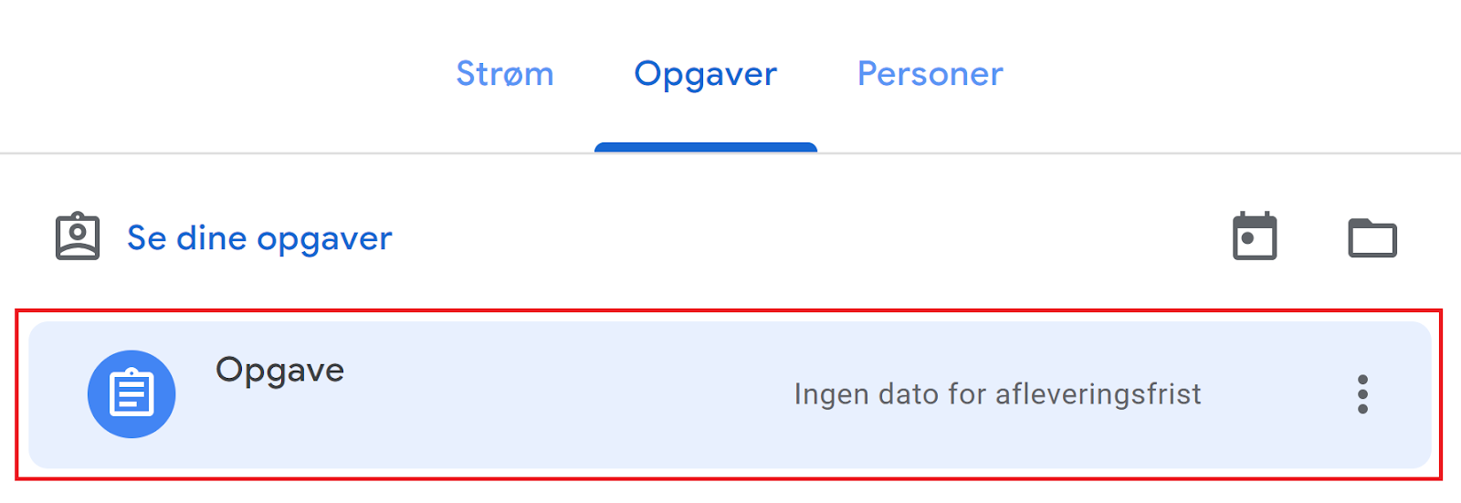 Gå til Opgaver i menuen i toppen af siden