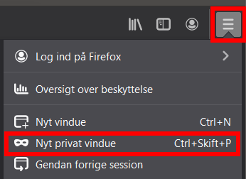 Vælg de tre streger i øverste, højre hjørne og tryk på Nyt privat vindue