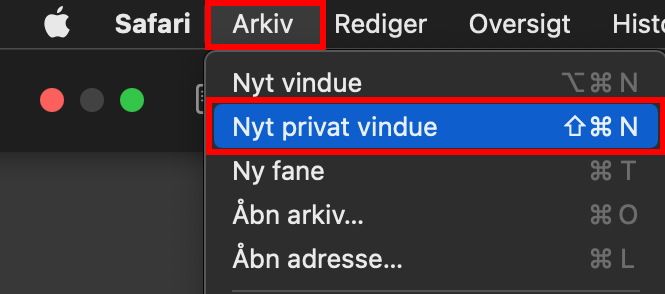 Åbn Safari og tryk på Arkiv i øverste, venstre hjørne af skærmen. Vælg Nyt privat vindue.