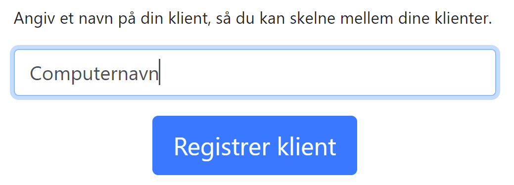 Skriv, hvad du vil kalde din computer, så du kan genkende den, hvis du har flere computere på og tryk Registrer klient