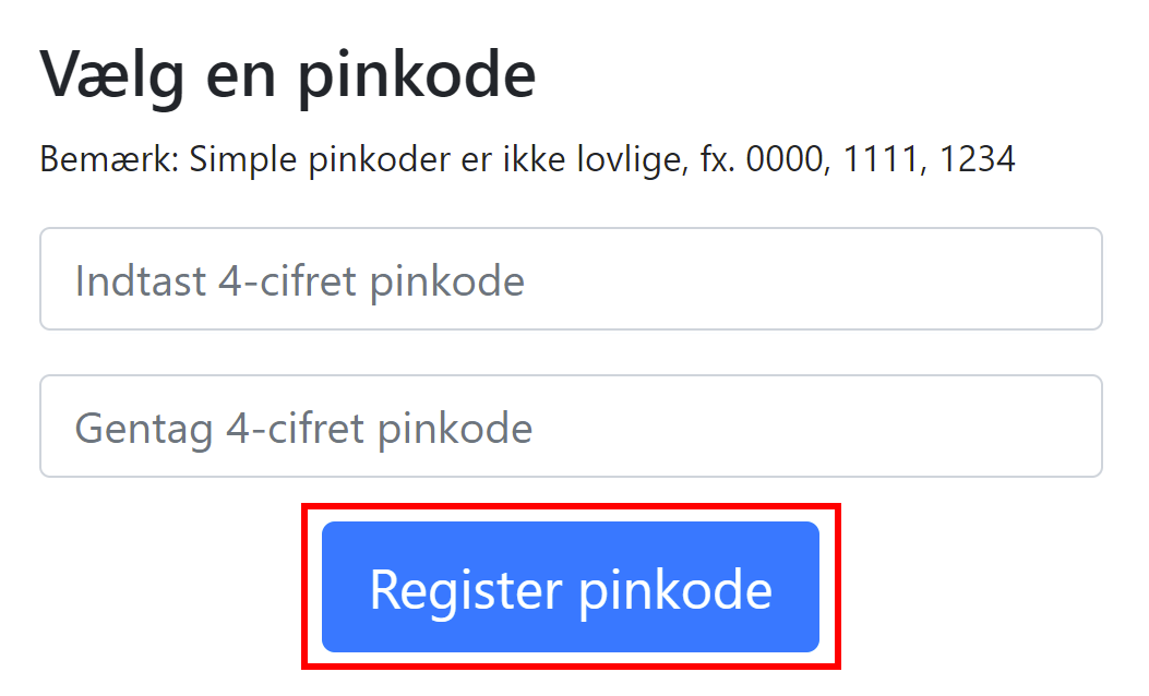 Tryk på udvidelsen igen og tryk Vælg pinkode. Koden accepteres ikke, hvis den er for simpel. Tryk Registrer pinkode, når du har skrevet koden, både i øverste og nederste boks.