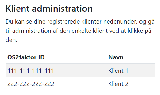 Listen af klienter kan redigeres ved at vælge Indstillinger under OS2. Du får en liste frem af registrerede klienter