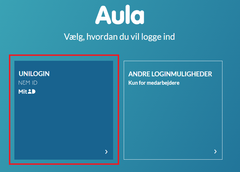 Gå til Aula og vælg Unilogin