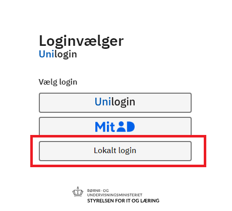 Vælg Lokalt Login