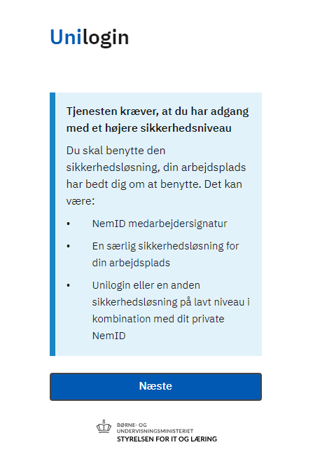 Du vil derefter blive taget til endnu en Unilogin skærm, tryk på næste