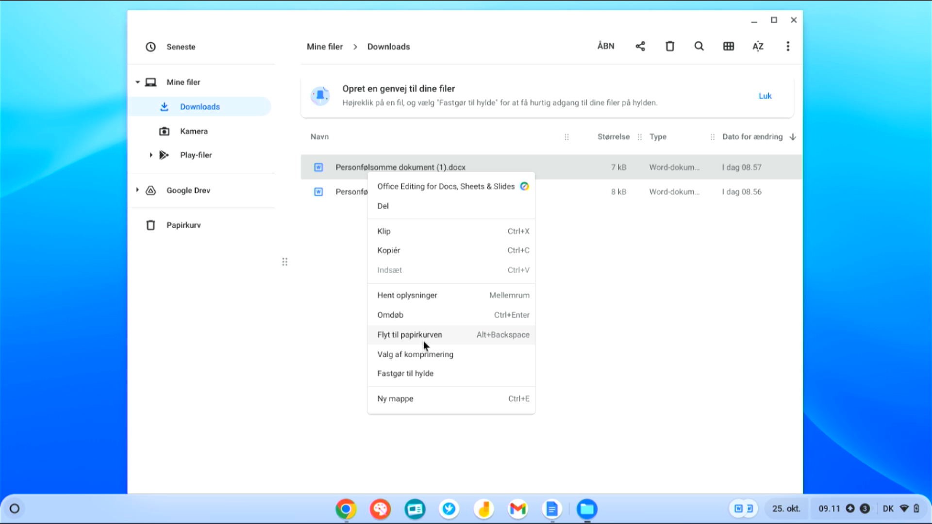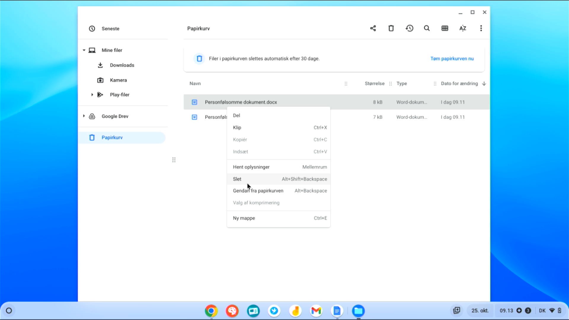 Du vil nu kunne se dine dokumenter du downloadede tidligere. Højre klik på hver af dem og vælg Flyt til papirkurven