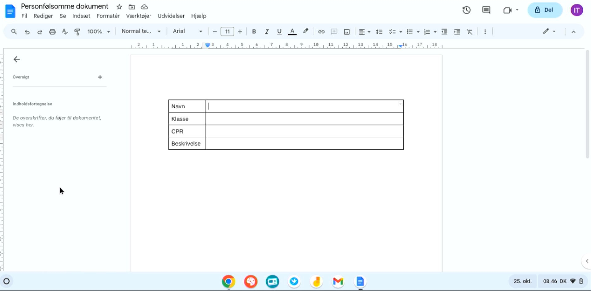 Hvis du skal arbejde med personfølsomme oplysninger, såsom CPR numre eller lignende, må disse ikke være tilgængelig online. De må altså ikke kunne tilgås fra dit Google Drev. Filer på skolens Google domæne bliver automatisk scannet og slettet hvis man finder personfølsomme oplysninger, især CPR-numre. Derfor er det vigtigt du følger denne guide, så du ikke mister dit arbejde senere.