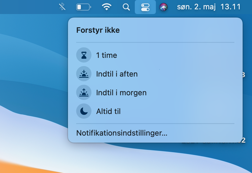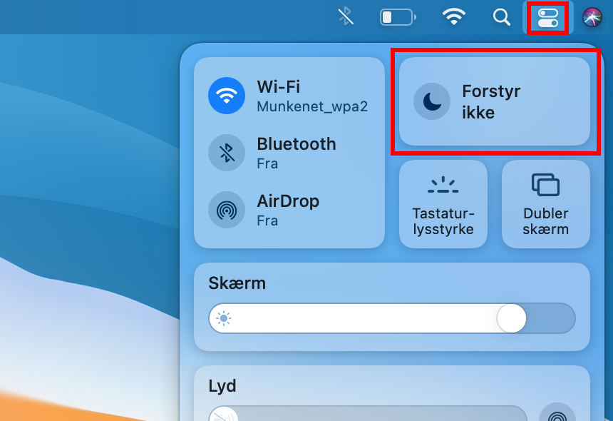 Tryk på ikonet til Control Center i øverste, højre hjørne og derefter på Forstyr ikke