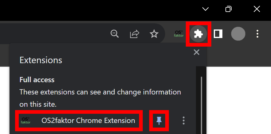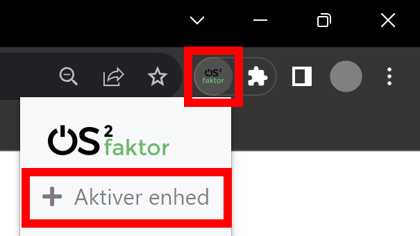 Tryk på ikonet for OS2-faktor i øverste, højre hjørne af browseren.