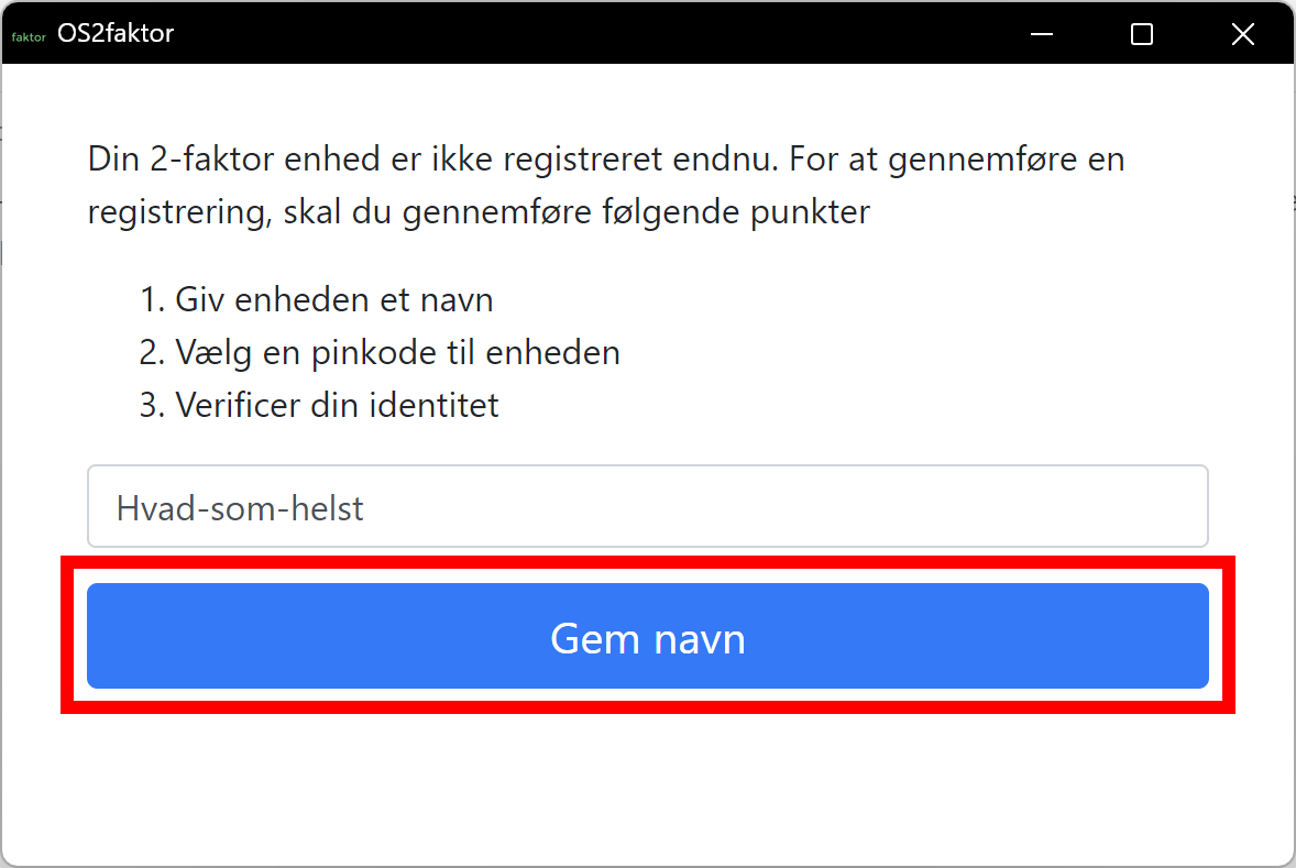 Der vil poppe et vindue op, når du har trykket på Aktivér. Angiv et navn for din computer - det kan være hvad som helst og er ikke vigtigt Tryk Gem navn, når du har fundet på ét!