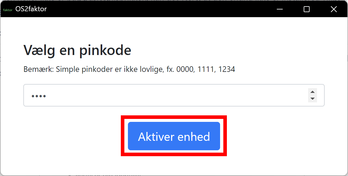 Opfind nu en 4-cifret pinkode, og tryk Aktivér enhed, når du har fundet på én!