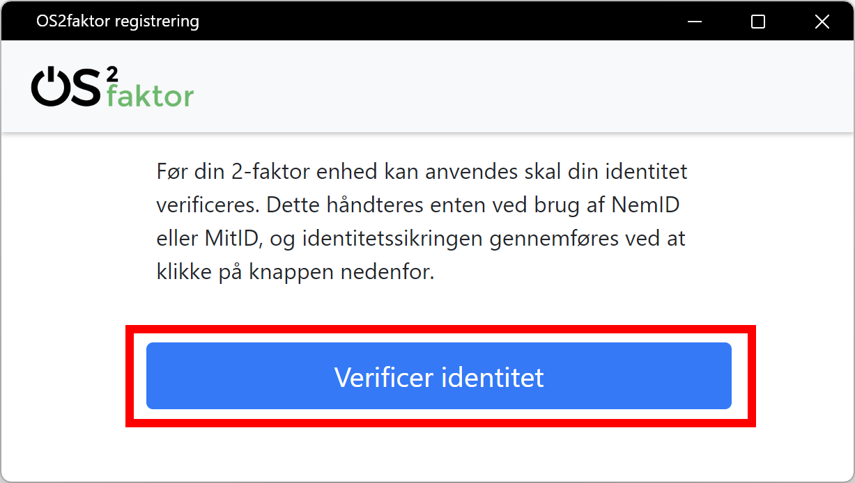 Nu vil du blive bedt om at verificere din indentitet - altså logge ind med MitID