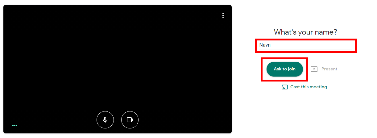 Efter at have givet tilladelse, skal du skrive dit navn og trykke Ask to join