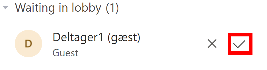 En ekstern deltager bliver ikke lukket ind i et møde, før du giver dem adgang. Når de anmoder om adgang, vil der dukke en lille rød boble op ved Deltagere-knappen. Tryk på den.
