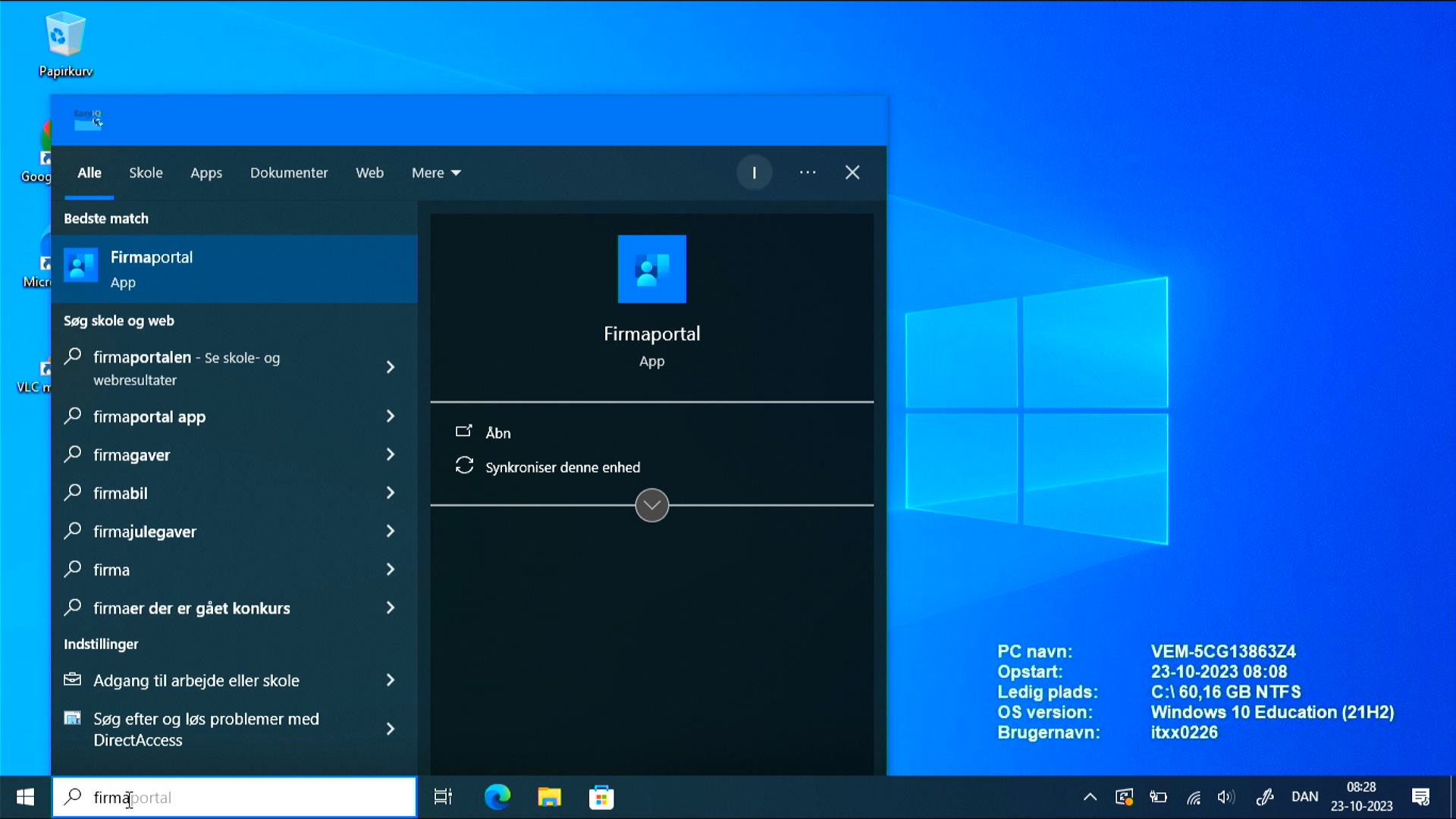 Vi skal nu åbne appen Firmaportal. I nogle tilfælde vil man kunne se den under bogstavet F, ligesom på billedet ovenover. Hvis man ikke kan se den, kan man bare skrive ordet Firma hvor man derefter vil kunne vælge Firmaportal
