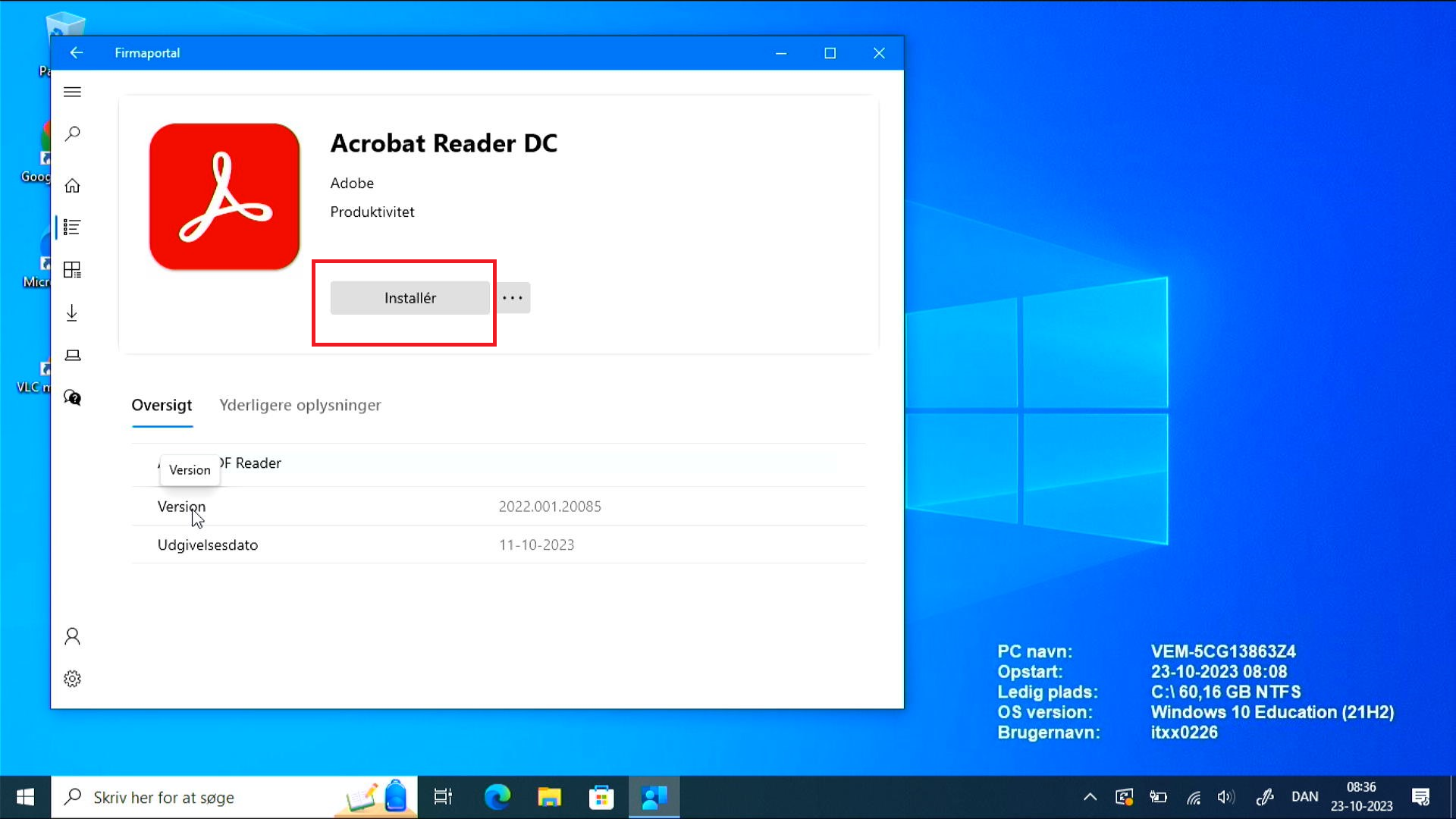 Tryk herefter på Installér, nu vil appen/programmet blive installeret på computeren.
