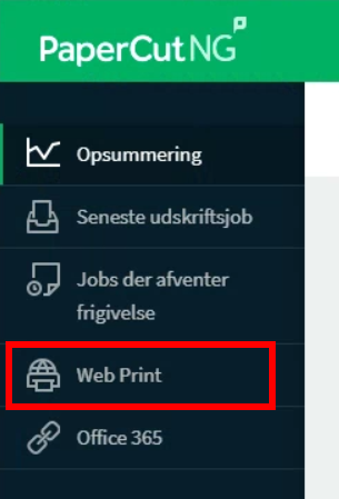 Tryk på Web print i menuen til venstre