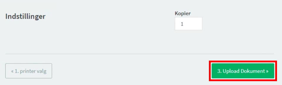 Vælg antal kopier og tryk 3. Upload Dokument