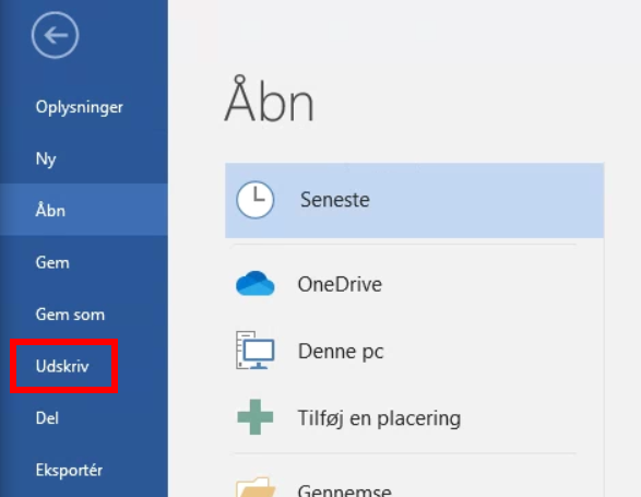 Tryk Ctrl + P eller tryk på Filer > Udskriv