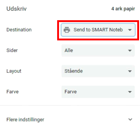Nu vil du få mulighed for at udskrive skærmbilledet. Husk, at du kan gemme det som billede eller som PDF.