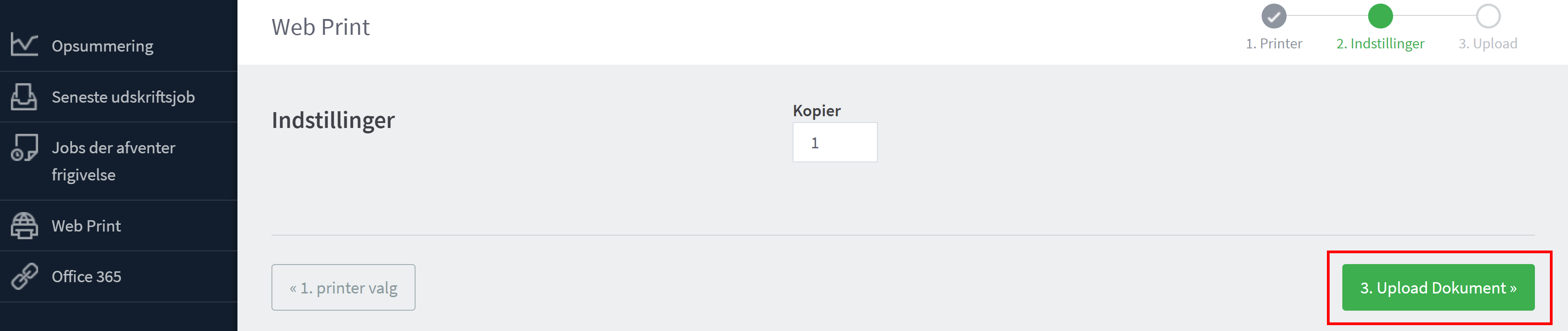 Indstil antallet af kopier og vælg 3. Upload Dokument