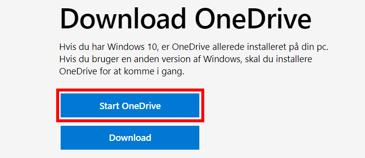 På computere med Windows 10 er OneDrive allerede installeret, så du skal bare logge ind, og så virker det. Start OneDrive ved at trykke på Windows-tasten og skrive OneDrive. Ellers gå til denne hjemmeside og tryk Start OneDrive