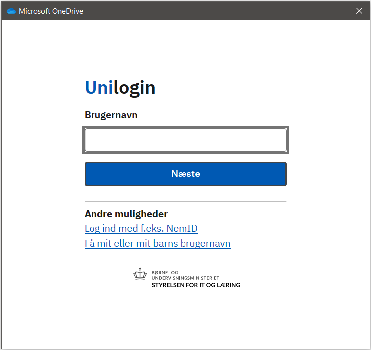Nu bliver du sendt til det almindelige Unilogin, hvor du bare logger på, som du plejer.