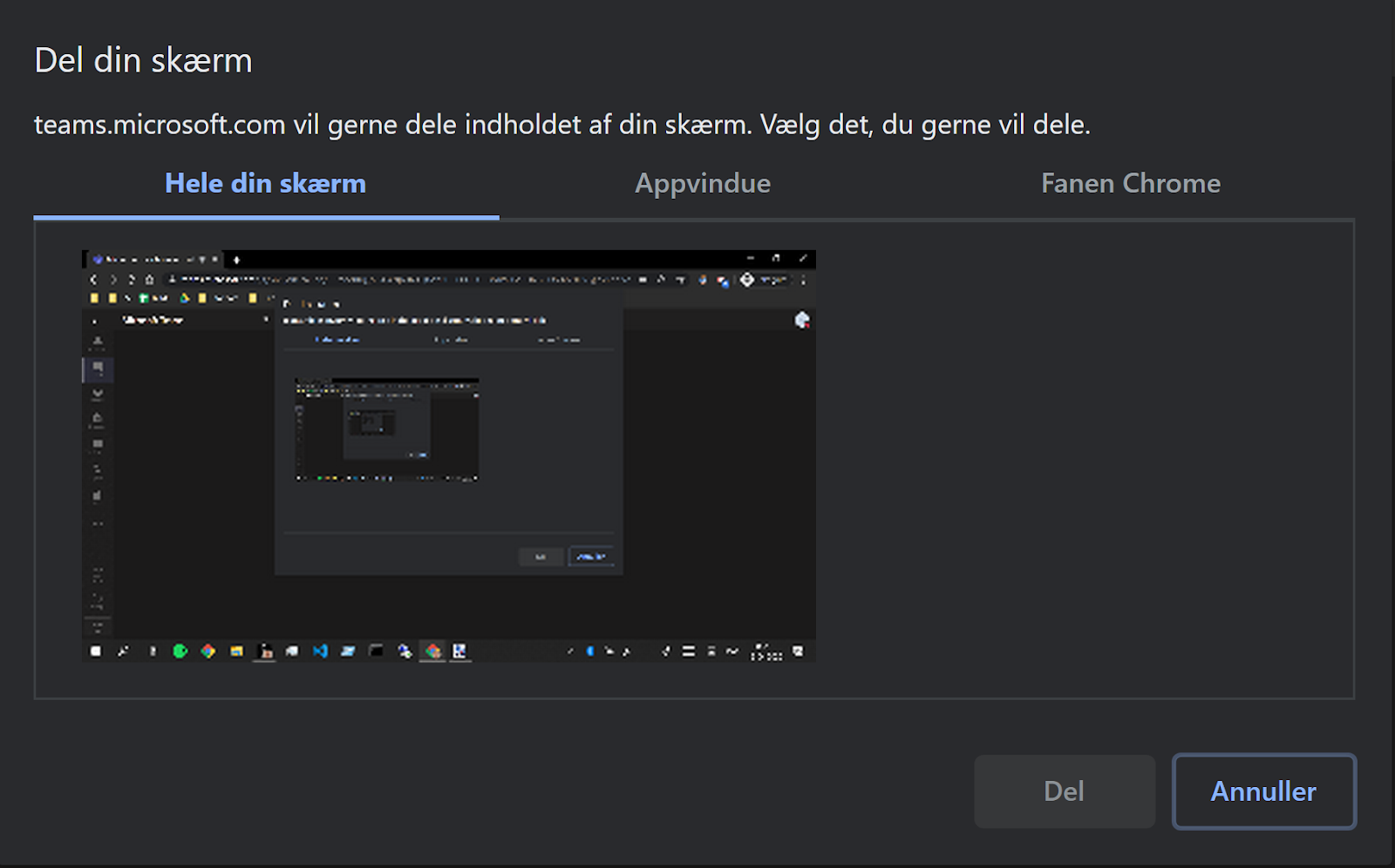 Vælg Skrivebord / vindue i venstre side. Hvis nedenstående billede dukker op, skal du trykke på billedet af din skærm og vælge Del
